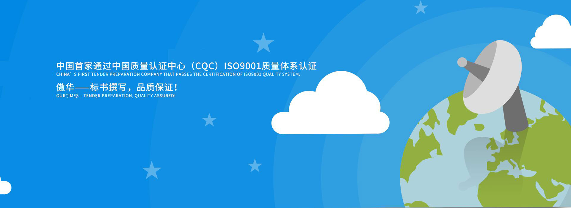 傲華創(chuàng)思標(biāo)書(shū)代寫(xiě)公司中國(guó)首家通過(guò)中國(guó)質(zhì)量認(rèn)證中心(CQC)ISO9001質(zhì)量體系認(rèn)證。傲華致力于為各行業(yè)及部門(mén)提供國(guó)內(nèi)及國(guó)際招標(biāo)項(xiàng)目評(píng)估、投標(biāo)指導(dǎo)、投標(biāo)代理服務(wù),為各大型企事業(yè)單位及其他高端個(gè)人或企業(yè)群體進(jìn)行招標(biāo)文件分析、投標(biāo)指導(dǎo)、制作標(biāo)書(shū)、代理編寫(xiě)、應(yīng)邀參與投標(biāo)活動(dòng)。